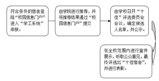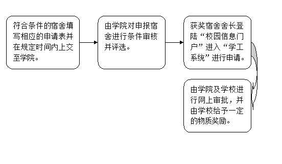 学生住宿管理规定》,宿舍整齐,清洁美观。宿舍成员上一学年内没有受到过有关部门的批评和处分;