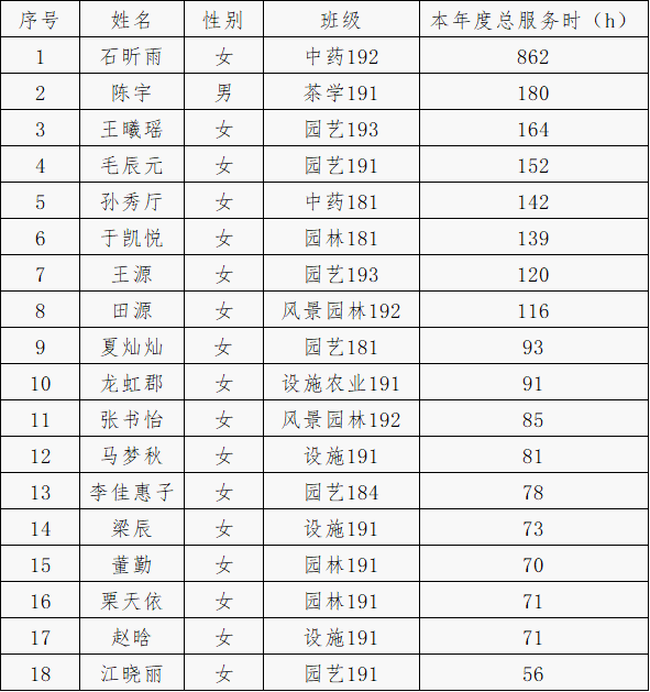 经个人申请,51吃瓜网审核,以本年度志愿服务总时长为主要依据,拟推荐石昕雨等18名同学申请51吃瓜网 优秀志愿者: