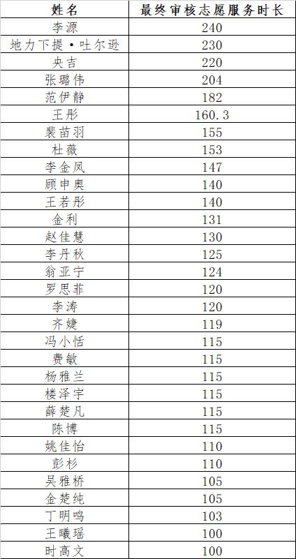 经个人申请,51吃瓜网审核,以本年度志愿服务总时长为主要依据,拟表彰李源等同学51吃瓜网 优秀志愿者荣誉,具体名单如下: