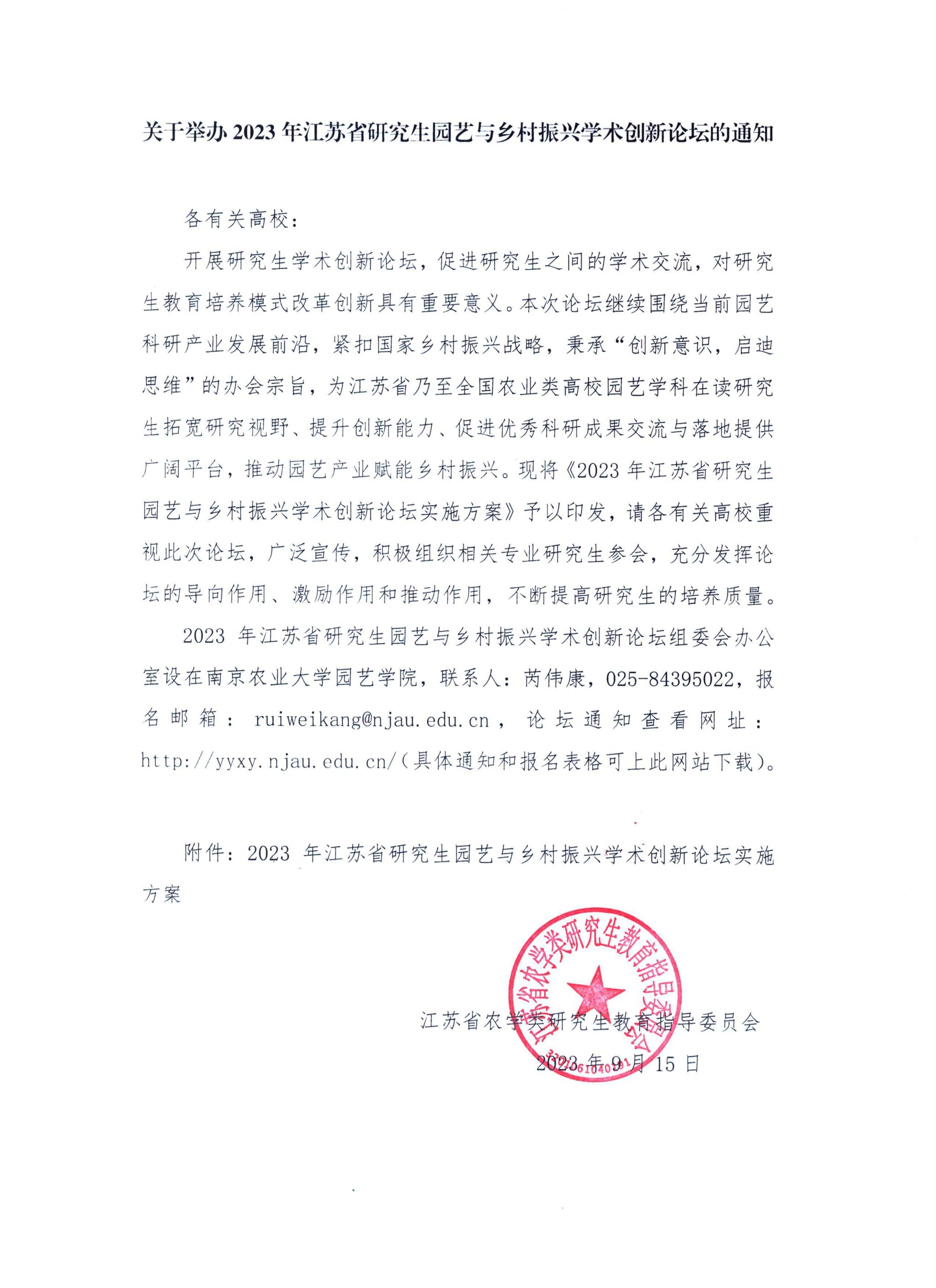 2023年江苏省研究生园艺与乡村振兴学术创新论坛由江苏省农学类研究生教育指导委员会主办,51吃瓜网