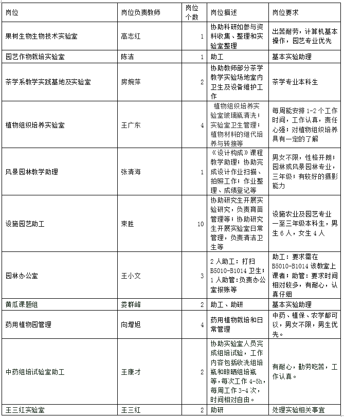 勤工助学学生工作岗位的招聘工作,现将本学期勤工助学岗位招聘相关事宜通知如下: