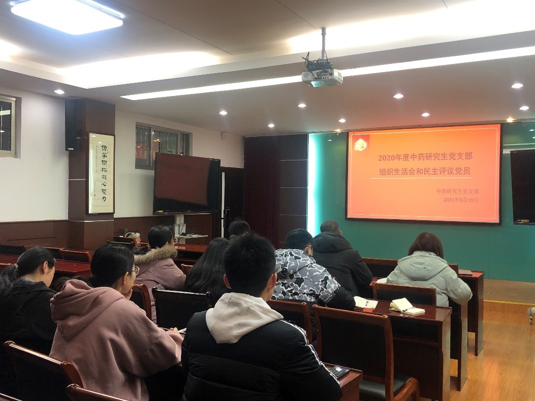 中药研究生党支部在学校生科楼B4011会议室召开了2020年度组织生活会和民主评议党员及党史学习教育启动仪式,包括党支部书记刘丽、党支部副书记杨培芳在内的共14名正式党员及2名预备党员出席了会议。