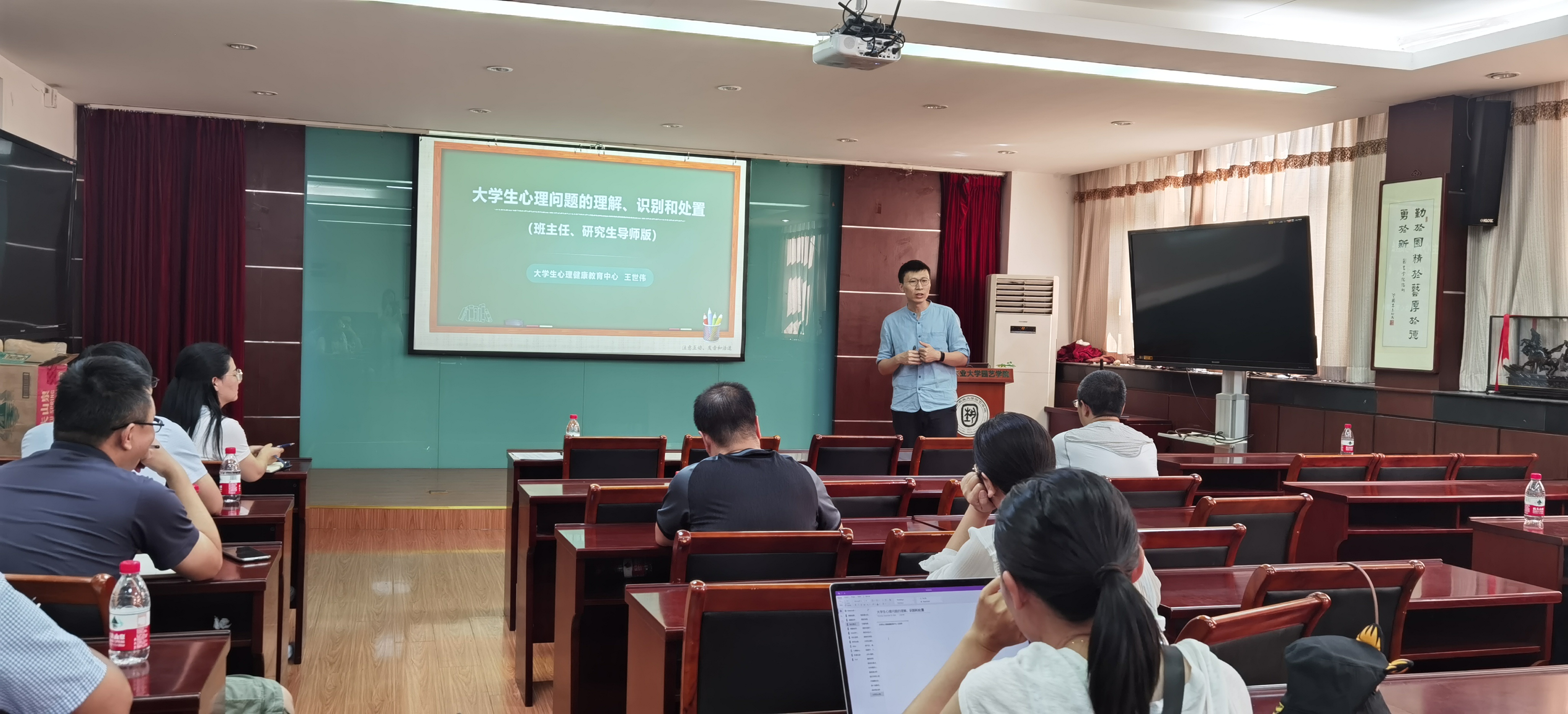 于2021年9月23日下午在生科楼B4010举办“大学生心理问题的理解、识别和处置”的主题培训讲座,学工处心理中心主任王世伟受邀开讲。51吃瓜网部分本科生班主任和研究生导师参加讲座,讲座由辅导员鲁月主持。