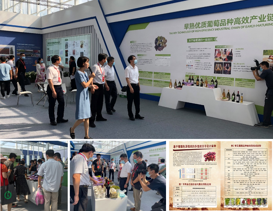 江苏省农业农村厅副厅长朱新华、南京市委办公厅副秘书长姚瑞平、栖霞区委书记黎辉等领导对展示成果的技术特点进行了细致的了解,并饶有兴趣地询问了当前国内外葡萄产业现状、省内鲜食葡萄品种选育成果以及葡萄与葡萄酒相关的其它问题,鼓励团队充分利用好自主创新平台,进一步突破‘卡脖子’技术,多为农村振兴作贡献。