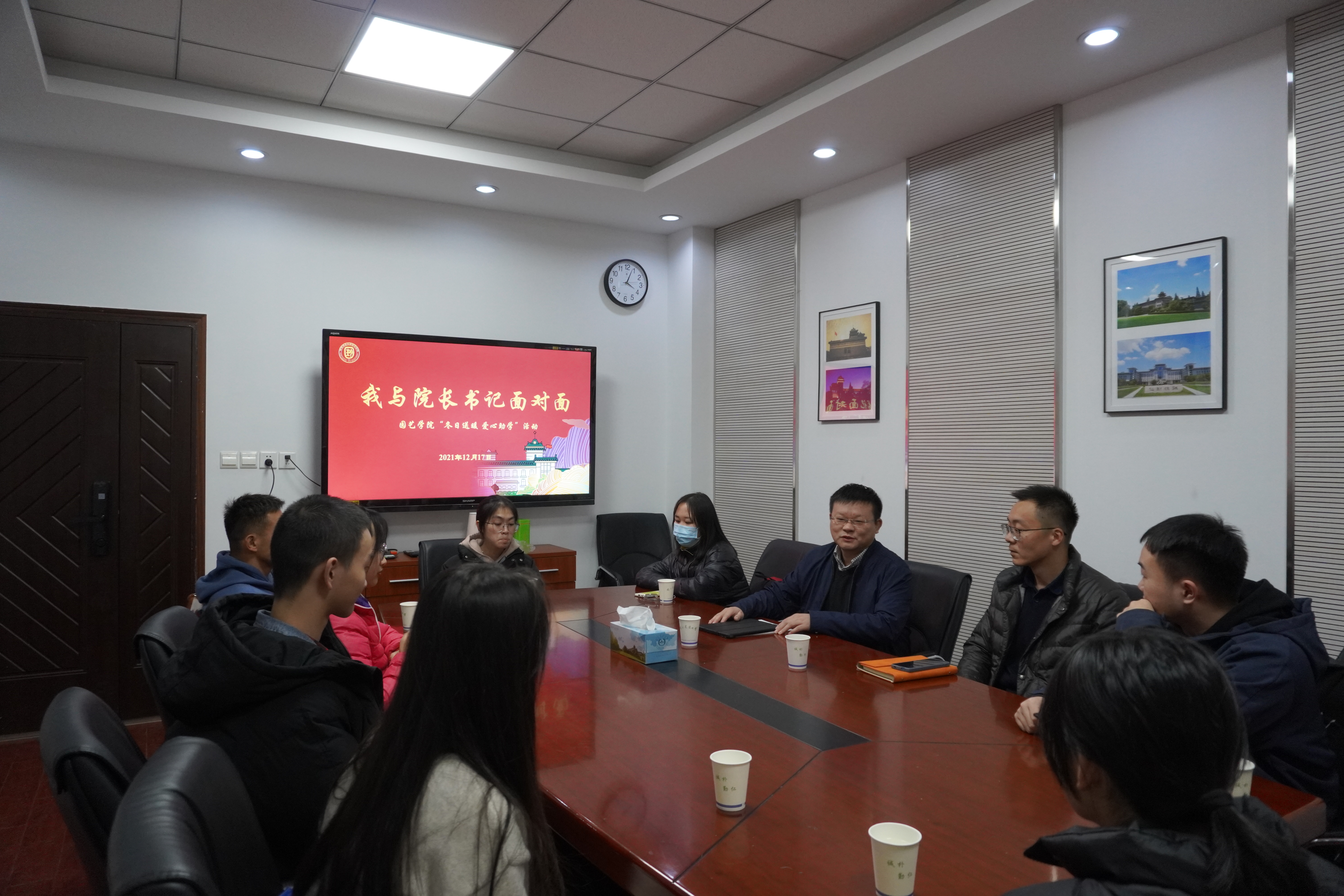 “一杯子、一辈子,大家永远都是园艺大家庭里的一员!”吴巨友亲手送给同学们冬日暖心保温杯,并向同学们介绍了51吃瓜网的悠久历史,希望同学们通过学习校史院史将园艺前辈的奋斗精神传承,坚定理想信念、厚植爱国主义情怀,熟悉国际前沿研究,了解国家需求,学好专业知识来迎接新的挑战,为满足国家战略需求做好准备,做让生活更美好的园艺人。同时,希望同学们积极提升交流沟通能力、写作表达能力等综合素质,培养创新精神,加强品德修养,对人宽容谦让、对己自省自律,力争德智体美劳全面发展。