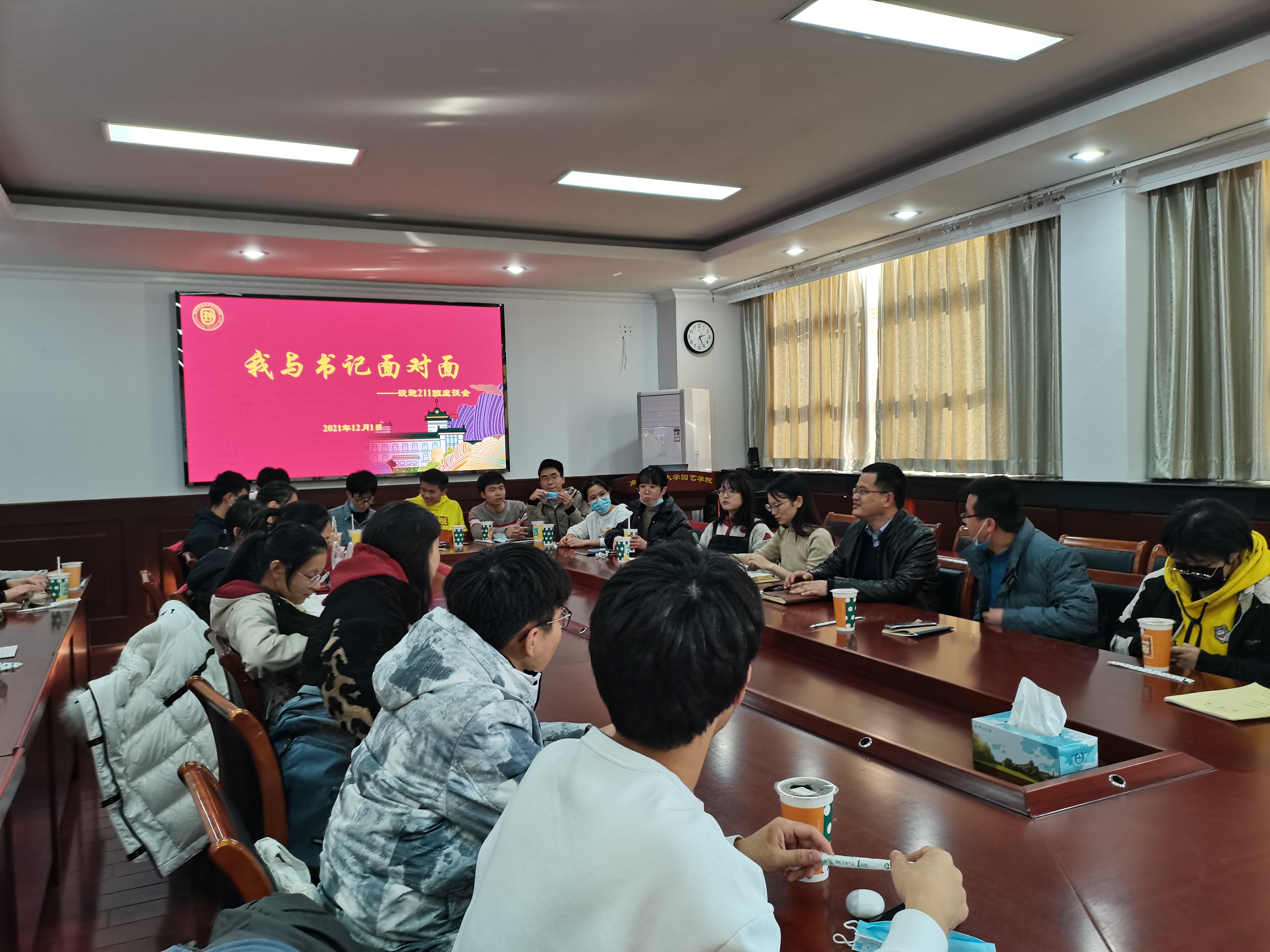 “冬日里的第一杯奶茶”开启了与设施211班的座谈会的序幕。韩键向同学们讲诉了设施专业的历史和专业前景,并介绍了周杰、于超、黄蕊蕊等优秀校友的学习创业事迹,希望同学们在大学里学知识、重实践,认真规划好大学生活,承担起新时代大学生的责任和使命,做助力国家发展、对社会有用的人。接着,韩键一一耐心解答了同学们关于时间管理、学业规划、人际交往等各方面的问题。
