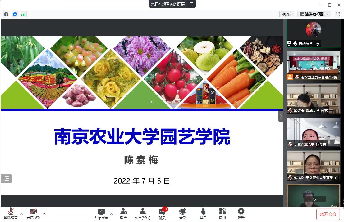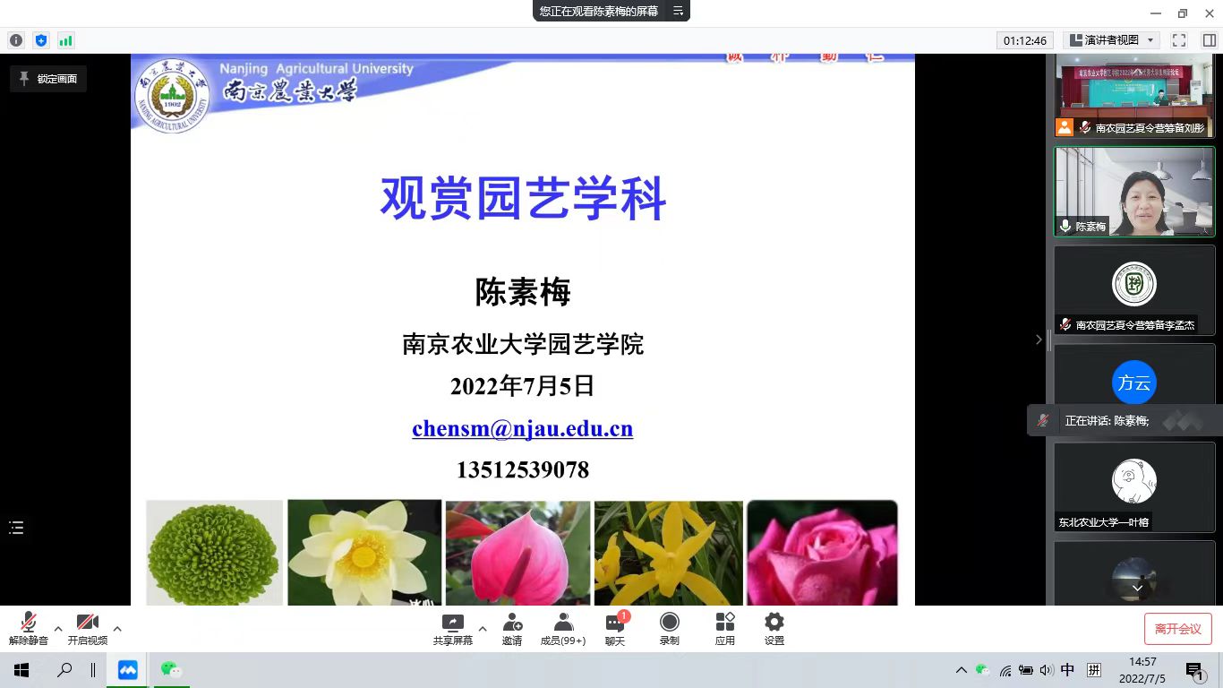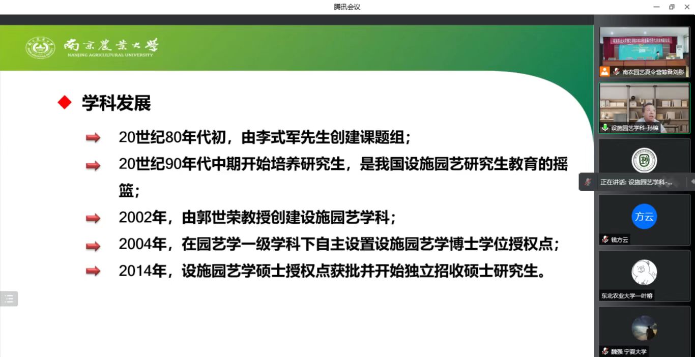 副院长、观赏园艺学科陈素梅教授、果树学科王晨教授、茶学学科房婉萍教授、设施园艺学科孙锦教授、风景园林学科丁绍刚教授。他们分别介绍了学科的师资、各位导师研究内容以及招生就业等情况,帮助学员们对各个学科有了更加深入的了解。