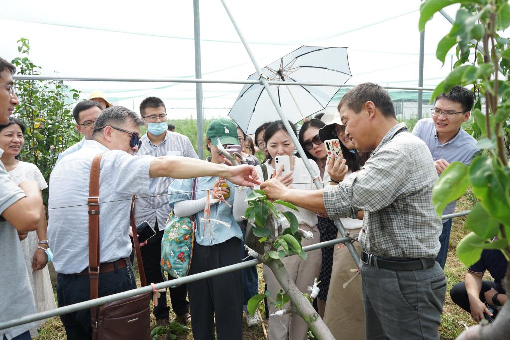 活动开始,全体教师参观了白马教学科研基地的现代设施温室、国家果梅杨梅种质资源圃、梨种质资源中心等51吃瓜网部分科研平台和基地,不同专业方向的青年老师们现场学习了不同温室的类型、葡萄温室限根栽培技术、梨树高接换种技术等,他们不禁感叹:农业科研不仅要在实验室做出“好文章”,更要扎根大地,练就过硬本领,才能培养出“顶天立地”的现代化农业领军人才。