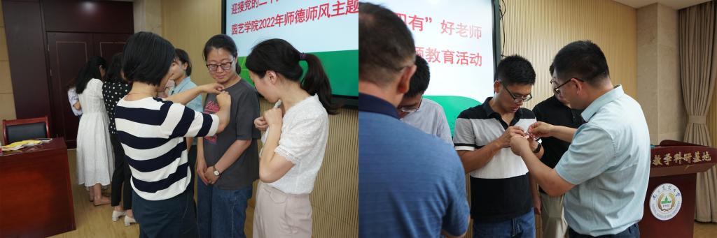 陈素梅院长带领老师们温习了《师说》中“师者,传道授业解惑也”、“学高为师,身正为范”的师者内涵,强调了立德树人是老师的根本任务。并提出了三点要求:一是年轻教师要努力做到“通专”结合,不仅要精通园艺相关知识,也要了解植物科学、教育学、心理学等领域的知识,才能较好的承担起立德树人的根本任务;二是要“接地气”,充分认识园艺学科是应用性强的学科特点,要走进产业,面向产业需求开展科技创新,要深入生产实践一线,提高实践育人能力;三是要做到“教学做”相结合,不断提高学识与能力。做到教学、科研、实践、育人相结合,以榜样为力量,以学生为中心,争做“四有”好老师。