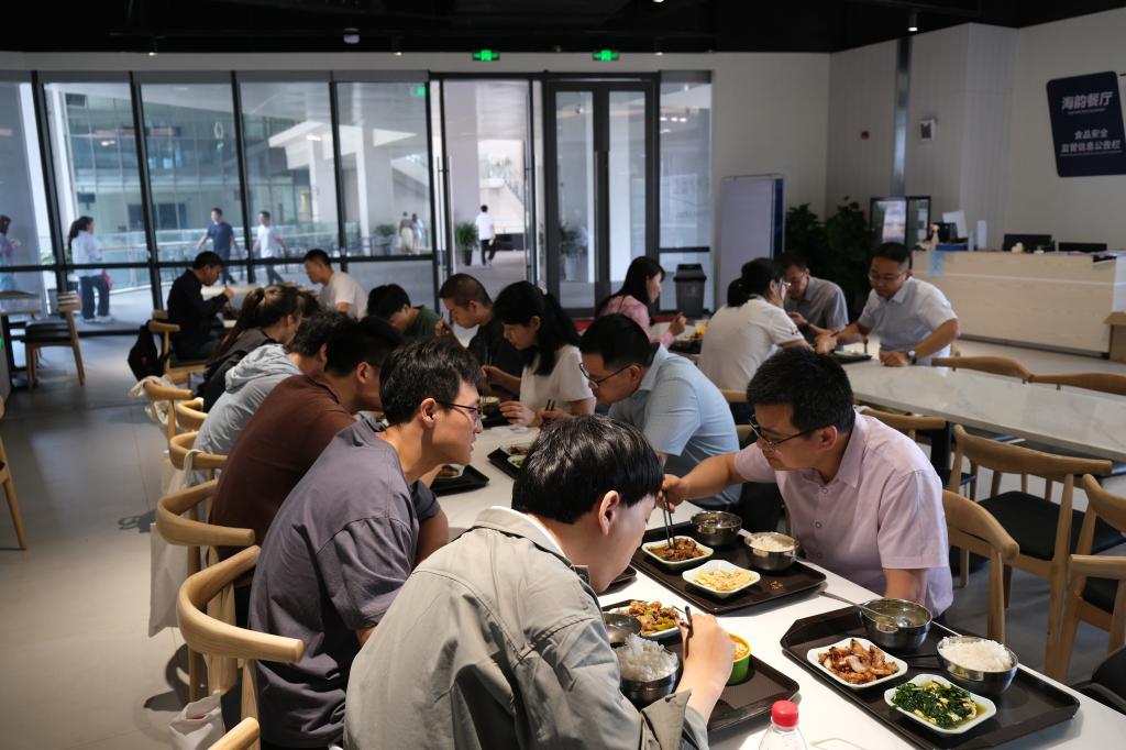 为增进师生交流,拉近师生距离,完善师生共同体建设,在课后,师生一同前往创新研学谷海韵餐厅,大家围坐在一起分享交流、共进午餐。