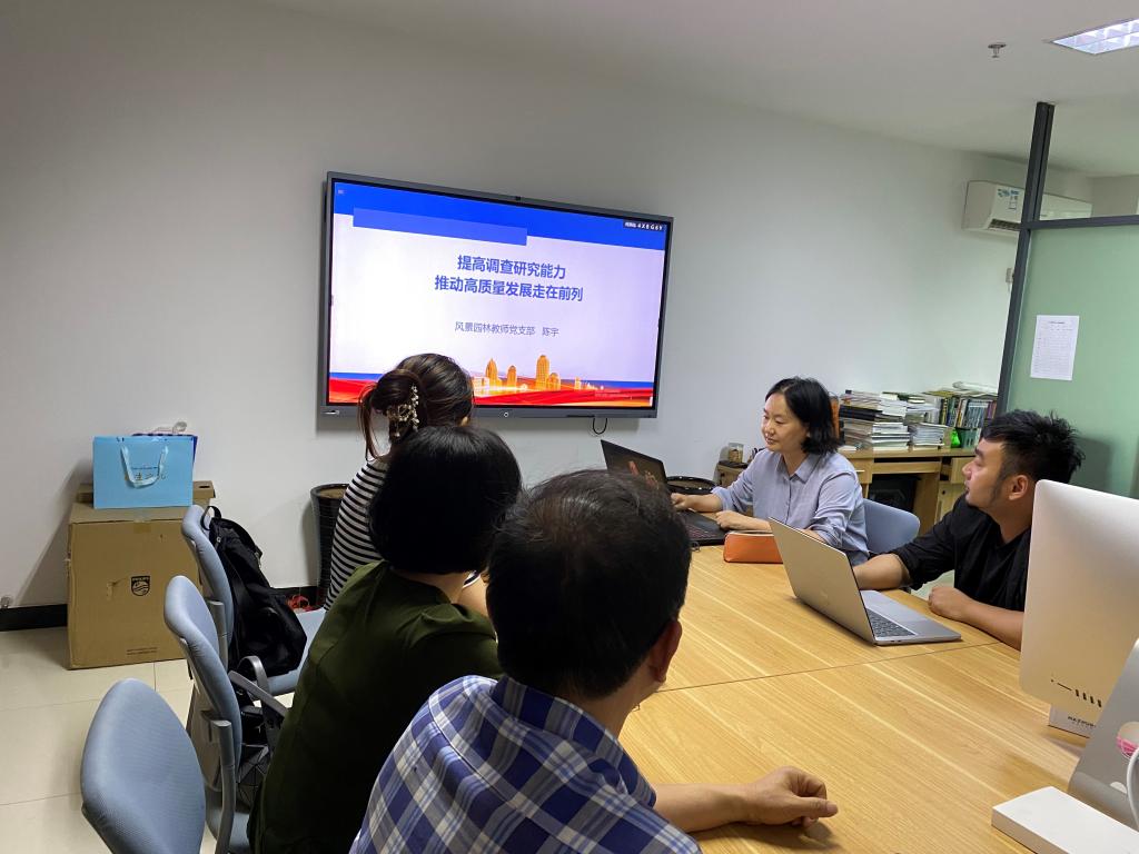 2023年6月1日,为落实党中央、教育部党组和学校党委的部署要求,按照主题教育工作总体安排,持续推动学习贯彻习近平新时代中国特色社会主义思想主题教育深入落实,风景园林教师党支部成员集体开展支部书记讲党课暨“提高调查研究能力,推动高质量发展走在前列”讨论活动。