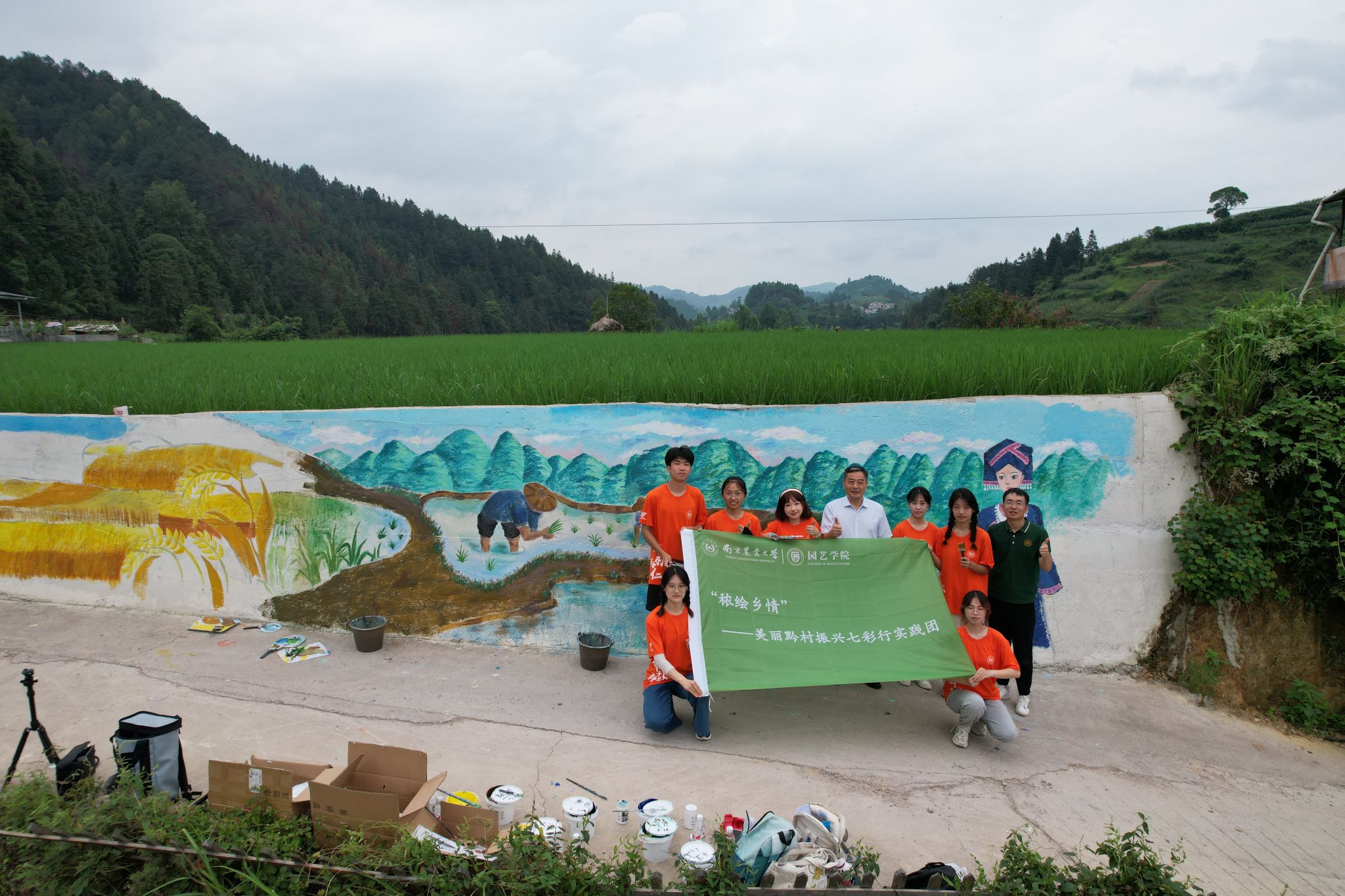 晨出暮归,彩绘乡村,实践团深入麻江县河坝村实地考察,结合实际情况和瑶族特色,以播种、丰收、农闲三大场景为主题,完成1幅20m×2m长篇稻田墙绘,结合场景主题,同当地适龄青少年共创2幅瑶乡童趣墙绘,将黔村民风收入七彩笔触,将童真烂漫融进美丽乡村。精准勘测,果蔬庭院,队员走访河坝农户庭院,实地调研农村环境整治情况,丰实果蔬庭院种植规划数据采集,完成果蔬庭院设计图纸4份和河坝村环境整治意见书1份。非遗传承,新意文创设计,队员亲身体验当地非物质文化遗产——枫香印染,并根据村落实际情况和民族特色,设计出一系列非遗文创产品,同时加以宣传推广。产业调研,助农直播,针对当地园艺产业发展情况展开调研,本次实践共收集河坝村园艺作物生产情况问卷50余份,输出河坝村园艺作物种植情况调查表1份,针对菊花等当地特色产品设计开展助农主题直播带货1场,用青年人喜闻乐见的方式助力当地产业发展。视频拍摄,定格美丽乡村,队员在河坝村内用脚步丈量大美瑶韵河坝,用相机定格美丽瞬间,共拍摄视频片段472段,经筛选、剪辑,完成河坝村文旅宣传片。