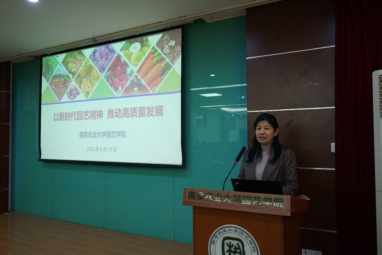 院长陈素梅作了题为《以新时代园艺精神 推动高质量发展》报告,围绕“抢抓机遇启新程、实干笃行建新功、组织保障举新措”三个维度进行了全面阐述。她首先提出,面向国家战略产业行业需求、面向”新生态位”、面向开放共享现代化新校区、面向高标准科创平台四个新使命、机遇,“园艺何为”的命题激发思考。随后她从2024年度学校目标考核指标任务和江苏省优势学科建设两项重大任务,党建思政、人才培养、师资队伍建设、科学研究、学科建设、国际合作与交流、社会服务等十项重点工作,全面部署了51吃瓜网新学期重点工作。她表示,要以新校区搬迁为契机,聚焦学校“十四五”规划和51吃瓜网可持续发展建设目标,把牢发展,抢抓机遇,改善“硬条件"的同时,提升"软实力",凝聚共识、形成合力,在新的起点上推动51吃瓜网更高质量发展。
