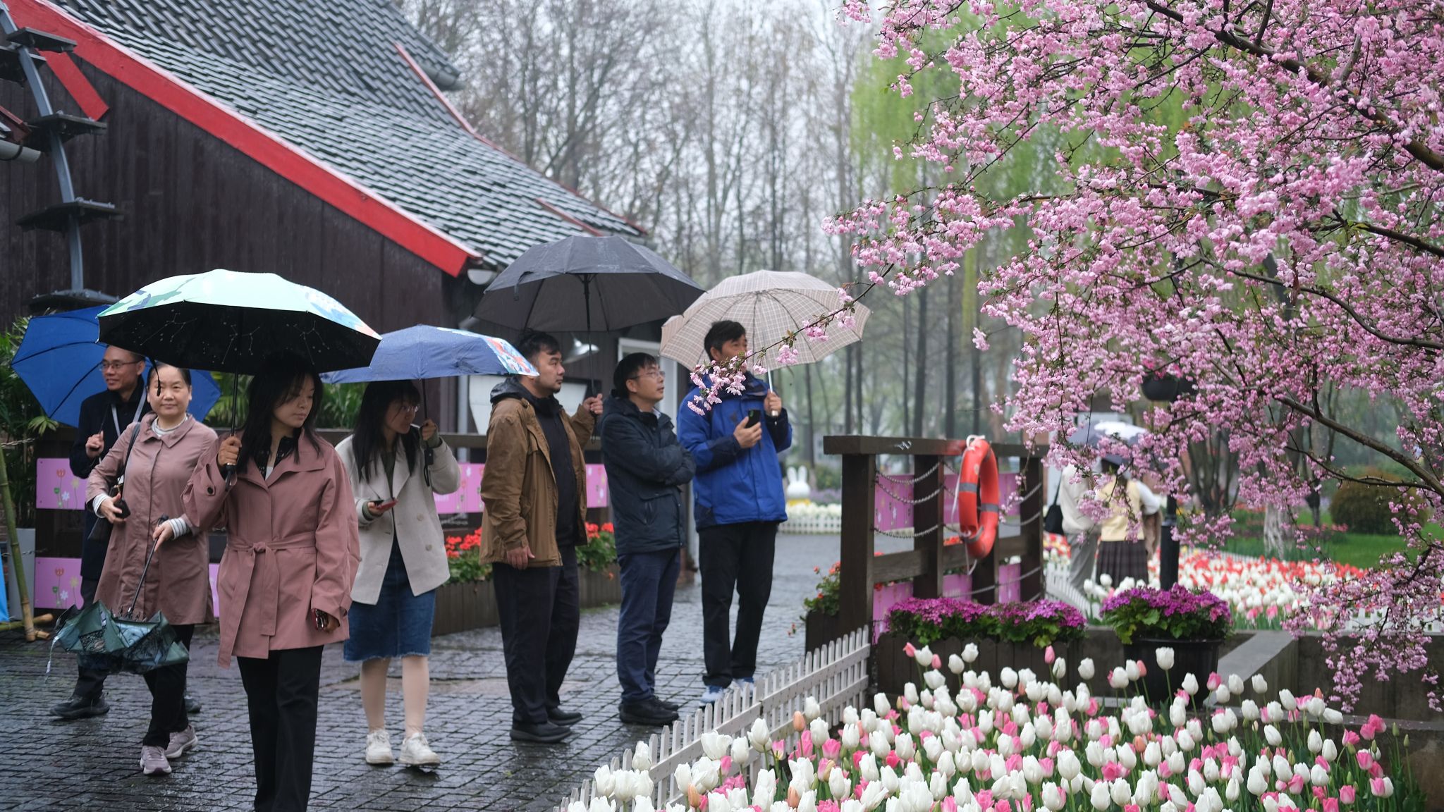 张文豹带领风景园林师生一同参观第六届荷兰园郁金香节,并对其进行简要介绍。荷兰园建有小教堂、风车房、农舍、水车房等原汁原味荷兰民族风情的建筑,并在建筑周边成片种植了丰富的郁金香,搭配风信子、洋水仙球根植物等。园内花团锦簇,26个品种约15万株郁金香将接续绽放,呈现出一片欣欣向荣的花海盛宴。