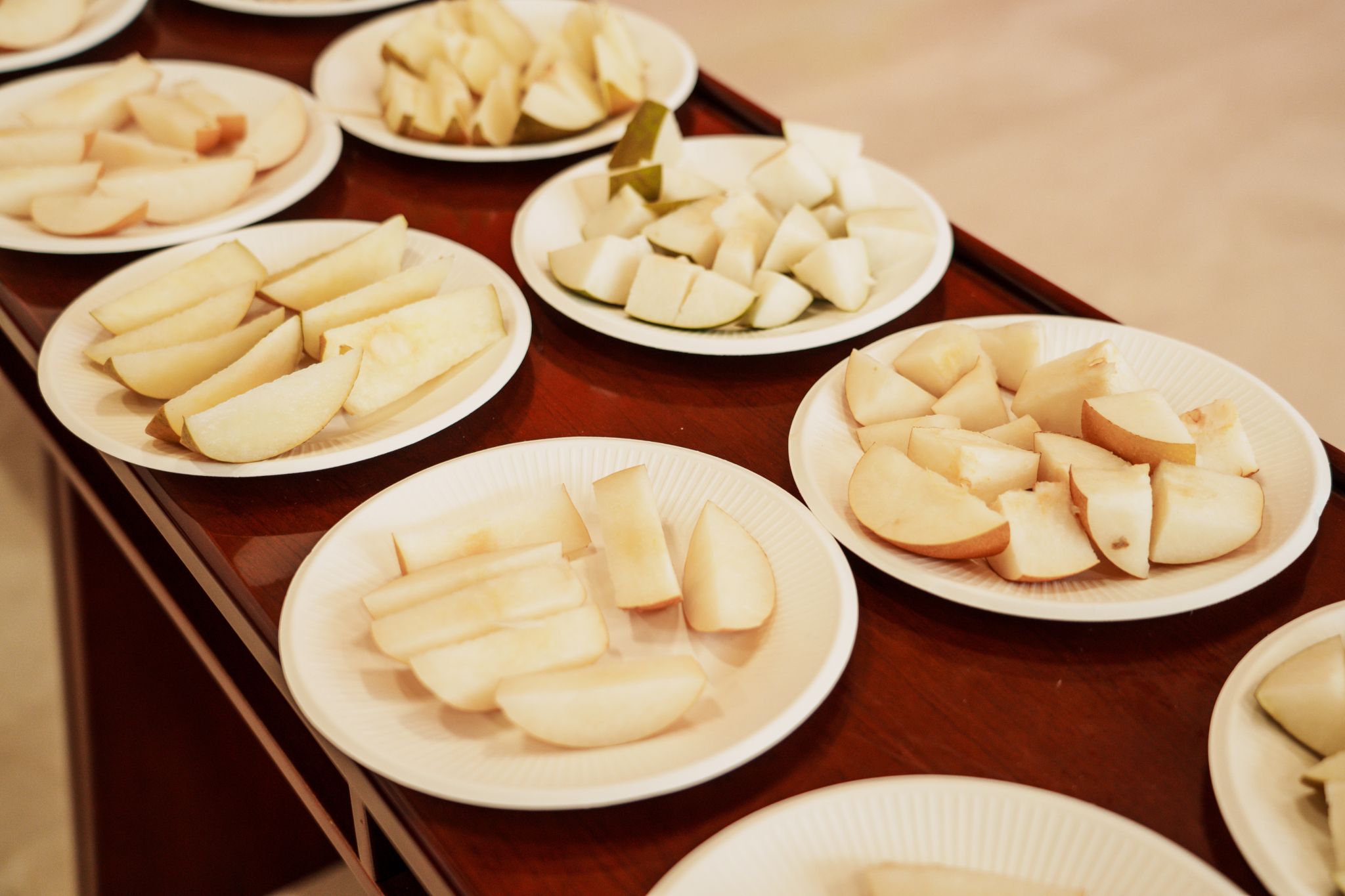 活动现场展示了各课题组的各类科研成果供师生们品鉴,鲜果翠梨、阳光玫瑰葡萄、菊花茶、苹果汁、生姜酒与各式茶点花样繁多,大批的新生和家长也被活动吸引前往现场,更直观的理解“园艺让生活更美好”的内涵。